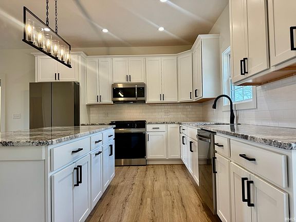 Nearing completion and will be move in ready with immediate possession. This fantastic 3 BR, 2 BA features just over 1750 finished sq ft and will feature open concept living/kitchen space as well as split floor plan. Luxury vinyl plank flooring, semi-custom kitchen cabinetry, solid surface counters, stainless appliances, and so much more. Two car attached garage and .83 ac m/l, situated just east of town in established Leatherwood Creek Estates. Don't miss this one! Taxes TBD