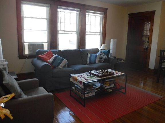 Sun Drenched One Bedroom with Charm and Character , Gleaming Hardwood Floors, Coin Operated Laundry. Over Sized Sun Filled Living Room with Natural Woodwork, Hardwood Floors, Wall Light Sconces, and Closet. Kitchen comes complete with Modern Cabinets, Hardwood Floors, Gas Stove, Refrigerator and Room for a Table. Updated Modern Tiled Bathroom with Vanity. Generously Sized Bedroom with Natural Woodwork, Hardwood Floors and Closet. Coin Operated Laundry, Storage, One Car Parking, Porch, Walk to Shops and Restaurants, Bus, Commuter Rail, Near Routes 95/128/117/20, Mass Pike. no pets please. Available November 1.... $ 1,425... Tenant responsible Gas Heat. Parking Included in Rent.