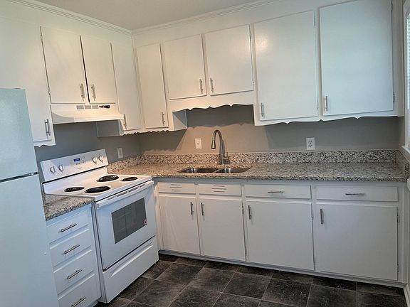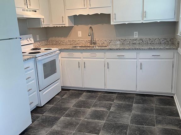 Super clean house in great Dunn neighborhood! All new paint and flooring throughout. Kitchen features granite countertops, new sink/faucet, electric range and refrigerator. New carpet in living room and bedrooms. Full bath in hall with new vanity/granite top, new faucet. Master has half bath. Large carport with storage/laundry area, spacious yard, and shed. 1 month security deposit due at lease signing. Tenant pays utilities (electric/water). No smoking, no pets.