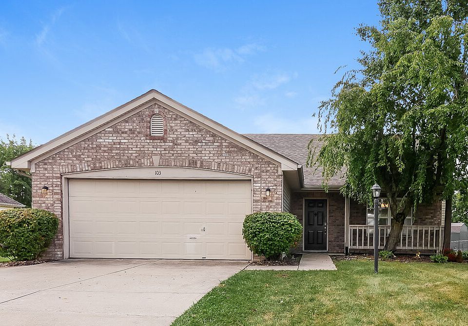 This newly renovated Greenfield rental home in Indiana has plenty of curb appeal with a brick exterior, a finished driveway, and an attached two-car garage. A charming covered front porch will invite you inside. The first room you enter is a vast living room with stunning vaulted ceilings, lovely vinyl plank floors, and a beautiful brick fireplace. The kitchen features all-white cabinetry and modern stainless-steel appliances. A main bedroom provides a relaxing retreat complete with a large walk-in closet and an adjacent bathroom. Sliding glass doors allow access to the massive deck found in the fenced-in backyard. The 1,280 square feet of space is move-in ready with a total of three bedrooms and two baths. Schedule a tour today.