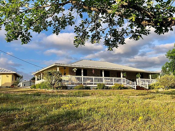 All appliances convey. Living/dining area curtains and candelabra are retained. ??Fiber-optic WIFI through Hill Country Telephone Cooperative. Water from community service. Septic updated in 2024 to new aerobic system, which can be expanded with additional lines. ??Entire property is deer fenced, with native stone entry and remote-controlled power gate. Additional high-fenced large garden area or kennel, two-car detached garage, and a workshop building, with workbench and built-ins. Three additional outbuildings including original stone pump house (the well is currently plugged and not in use).??Drought-resistant xeriscape landscaping. Native trees include peach, redbud, mountain laurel, mesquite, maples, cedar elms, oaks, Texas persimmon, Blanco crabapple, and Texas pear.