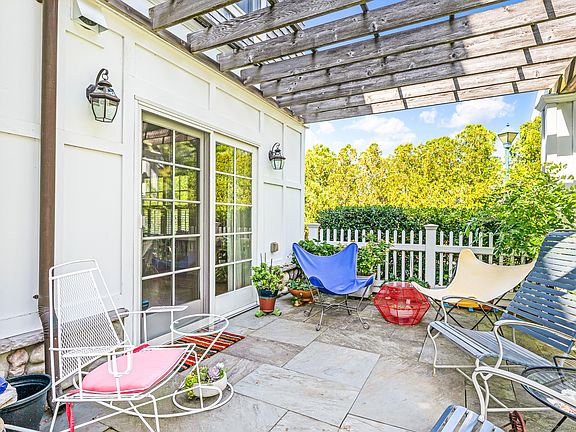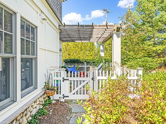 Stonington Borough condominium living at its very best! Location, location, location! This unique property has magnificent gardens and plush landscaping like no other! Step through your own private garden gate - an oasis onto itself - and then again through the sliding French doors of your spacious living and dining room with vaulted ceiling, gas burning fireplace and windows with custom shutters. A light and airy feeling abounds! The living/dining room has generous proportions and accommodates a large seating area open to the fireplace and French doors, as well as a formal dining alcove and even a study area. The granite topped breakfast bar is at the far end overlooking a state of the art kitchen with all high end appliances. A welcoming, sunny primary suite includes an enormous walk in closet and en-suite full bath with stone countertop, large shower and tile floor. The second bedroom looks out into the hallway as well as to the living/dining room through interior pocket doors and features a walk in closet and exterior French sliding doors opening to a small back patio/your third entrance. A full laundry room and second bath with tub and shower are located off the main hallway/entry foyer. Gleaming hardwood floors throughout! A carport with one Parking space is included. The condominium association is professionally managed and exceptionally well run.