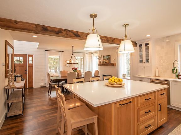 Absolutely stunning home in New Ipswich. This beauty has been tastefully updated top to bottom. Sitting on a private 2 acre lot, this home is everything you've dreamed of. The wow starts off at the beautiful farmers porch that looks out over a flat level yard. Make your way in to a dream mud room where every coat and shoe has a home. Be mesmerized as you enter the amazing kitchen with eat in are as well as coffee bar. Just off the kitchen is a formal dining room for the whole gang as well as a family room full of natural light. Make your way upstairs to 2 generous bedrooms and a full bath to share. The primary bedroom is just down the hall with an amazing walk in shower and closet space. The basement offers space for a home gym or office as well as room to expand for a game room with walk out access to the back yard. This home is a must see!! Showings will begin Saturday 5/18 at the open house 11:00-1:00.