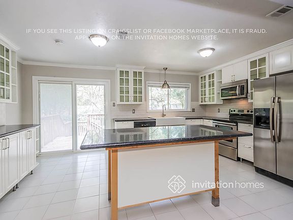 Home Features and Amenities: Air Conditioning, Deck, Fenced Yard, Fireplace, Garage, Granite Countertops, Kitchen Island, Long Lease Terms, Luxury Vinyl Plank, Patio, Pet Friendly, Smart Home, Stainless Steel Appliances, Tile, W/D Hookups, and professionally managed by Invitation Homes.