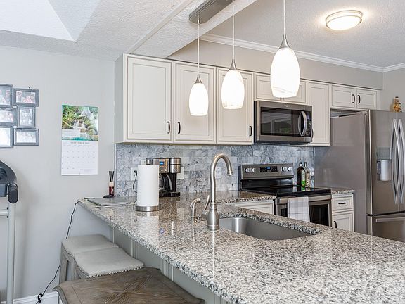 Large breakfast barSunny breakfast areaPrivacy-fenced patioGranite countersStorage areaWood floorsTray ceiling