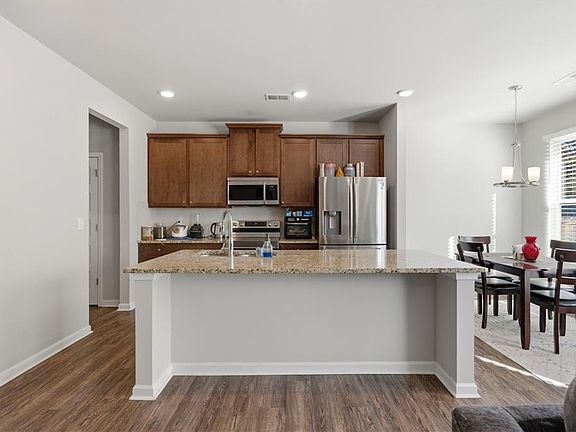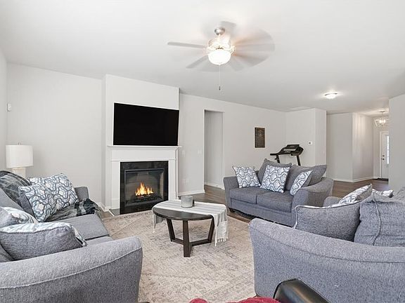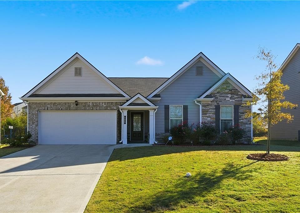 Nestled in a community convenient to all the charming amenities of Calhoun, this ranch-style residence presents a wonderful opportunity for comfortable living. The exterior features a pleasing combination of siding and stone accents, creating an attractive street presence and includes a two-car garage. Upon entering, the open-concept design immediately welcomes you. The main living area is spacious and bathed in natural light, centered around a cozy fireplace—a perfect focal point for gathering. This seamless flow from the living room into the kitchen and dining area makes entertaining a breeze, allowing hosts to interact with guests effortlessly. The common areas boast durable, LVP flooring and light, neutral paint throughout, providing a blank canvas for personalization. The heart of the home, the kitchen, features rich, warm-toned cabinetry, granite countertops, and a subway tile backsplash. It is fully equipped with stainless steel appliances, including a large refrigerator, and offers an expansive central island with counter seating for quick meals or casual conversations. Adjacent to the kitchen is the designated dining space, which receives ample light from the nearby windows and glass door leading to the outdoor area. The home offers three well-proportioned bedrooms, providing private retreats for all occupants. The owner's suite is a true sanctuary, featuring a beautiful tray ceiling, generous closet space, and large windows with dark curtains that offer privacy and control the natural light. The attached primary bathroom continues the sophisticated color palette with a double vanity set in a granite countertop and dark wood cabinetry. It includes a walk-in shower and a separate soaking tub, providing a spa-like environment. The secondary bedrooms are equally comfortable and share access to a well-appointed guest bathroom. Summer living extends beyond the interiors. A glass door off the dining area leads to a private outdoor haven. The backyard is fully enclosed with a wooden privacy fence, creating a secure space for play or relaxation. A concrete patio provides the ideal spot for grilling, outdoor seating, and enjoying the warm Georgia evenings. The .25-acre lot is easy to maintain, giving occupants more time to enjoy their home and the surrounding community. This property balances modern interior finishes with practical outdoor space, making it a standout option in the local market. We invite you to experience the thoughtful design and comfortable atmosphere of this Calhoun residence. Schedule your private viewing today.