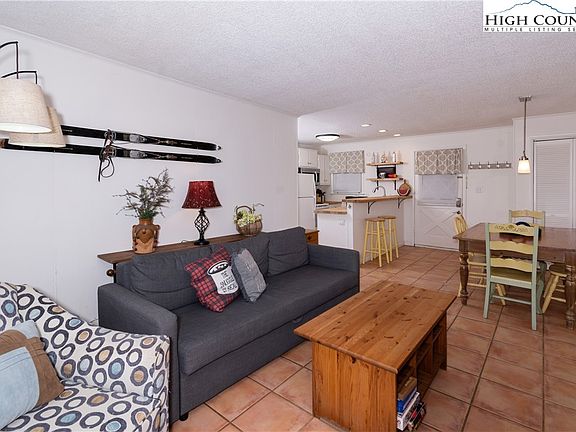 Fantastic location! Just 3/10ths of a mile to the entrance to Ski Beech Resort !Walk to all the live music and breweries this summer . Walk to the ski lift and tubing in the winter. Cozy and quaint completely furnished 2 bedroom, 2 bath ,has kitchen with butcher block countertops ,and built in microwave & all small appliances convey including pots and pans! Roomy living area with stone gas fireplace to warm up with after a day of exploring . Futon sofa pulls out for a couple to sleep right beside the fire so romantic. Ceramic tile flooring throughout for those messy ski boots. Easy clean up with washer and dryer, to make life a little more convenient .2 full bathrooms for the owners privacy and the guests. A balcony with rocking chairs to slow down and relax with a warm drink. Enjoy all the wildlife, deer and the birds with a seasonal mountain view .Linens, and kitchenware included , just bring your toothbrush ready to enjoy . A mountain get away... Skiing, tubing , brewery ,restaurants, coffee shop, live concert series ,and mountain biking . 4th of July BBQ , fireworks, climbing tower ,Sunset dinners at 5506 , Christmas Parade, New Years fireworks , Oz Autumn Party and so much more!! Lots of activities for your family to enjoy. Multiple selection of restaurants, shopping, general store, climbing tower and wedding venue so much to see and do ! Including the Beech Mountain dog park , bring them too! Condo association is very pet friendly! Come make this mountain hideaway your retreat or rental investment. Seller has paid assessment in full. Sleeps 6 with plenty of room . 2nd home for many years .Lots of special memories. Seller purchased full time residence, reason for selling. Will need appointment for showings. Motivated seller . Seller will pay a quarter of dues direct to Wilson Agency with acceptable offer.