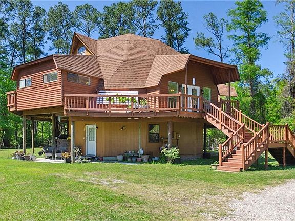 Peacefully situated at the back of 6.65 acres of land and nestled between 2 canals that lead directly to the Pearl River and minutes to the Gulf of Mexico, this geodome home identifies as the perfect retreat for the quintessential Louisiana lover! Majestic cypress and pine trees line the borders and bring that bayou vibe to life. The unique construction of the home offers energy efficiency, 360 degree porch views, wide open living space with 23 foot ceilings, and guest quarters on the bottom floor complete with kitchen, bath, and private bedroom. Current owners added a Mezzanine lift for people and/or cargo, workshop set up, a fully functioning aquaponics/hydroponics garden system, and recently replaced heating and cooling systems and roof. The land offers much space to build additional structures or consider subdividing the land if you don't need the acreage. Meticulously maintained by one owner translates into trust, confidence, and peace of mind upon purchase. Flexible bond for deed financing available and motivated sellers makes for this to be an easy experience! Don't delay and call today for your private tour. of this unique and one-of-a-kind properties in Southeast Louisiana!