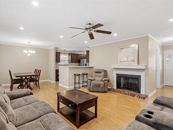 UPDATED & MOVE-IN READY in heart of town! UPDATES: carpet, roof, bathroom lights, sliding patio door, guest room closet doors & paint November 2024! Easy living w/ fully fenced yard! Entry way welcomes to a bright & open concept layout thanks to both ample natural light and recessed lighting, with spacious living area that can accommodate most furniture arrangements, features fireplace with power connection for TV wall mount. Kitchen offers ample storage and counter space plus bonus space. Main floor laundry ROCKS - equipped with custom storage option and cabinetry for all your storage needs, accessible from both kitchen and entryway. Enjoy primary suite with walk in closet and primary bath. 2 additional guest rooms, large guest bath, linen closet, & 2 car garage complete this wonderful home! Exceptional MOVE-IN READY value! New pantry & guest room closet doors installed by end of Nov.