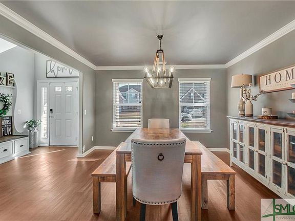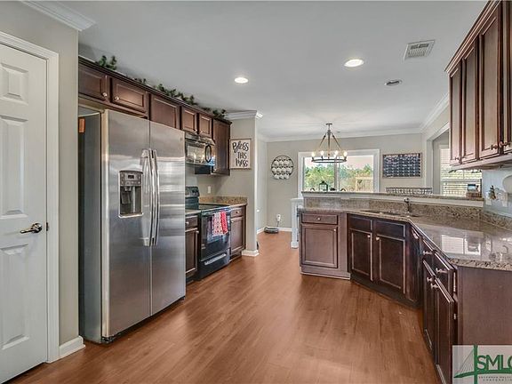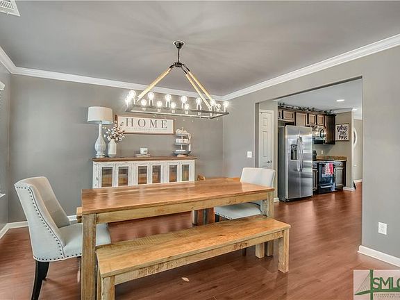 Better than new immaculate home! 3 bedroom PLUS large bonus or 4th bedroom with 3 full bathrooms. Soaring ceilings, large entry way and oversized formal dining room right off of the eat-in kitchen. This kitchen is the Chef's dream boasting rich 42" cabinetry, luxurious granite countertops, recessed lighting, and stainless steel and black appliances. Spacious great room perfect for entertaining and crown molding throughout the first floor. Guest suite downstairs. 3 additional bedrooms upstairs. Master suite boasts large sitting area and generous master bathroom with oversized walk in closet fit for the royal family! Separate soaking tub and stand up shower. Home is situated on a quarter acre lot which is fenced in over looking the lagoon and woods for absolute privacy! Storage shed and 2 car garage! 15 minutes to Gulfstream and 30 minutes to Hunter Army Airfield.