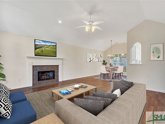 Move in ready spacious 3 bedroom 2 bath home with double garage in Georgetown Community on a rare .70 acre lot. Fresh neutral paint, soaring ceilings and no carpet! Family from has fireplace and is open to dining and kitchen. Granite counters, stainless appliances & white cabinetry complete the eat in kitchen. New stainless refrigerator to be furnished by Seller. Screen porch with ceiling fan overlooks a massive back yard with mature landscaping, storage shed and Outdoor Kitchen Building, perfect for outdoor cooking with power, water, grill station, sink and more. Primary bedroom features a walk in closet plus full en suite bathroom with oversized vanity, separate walk in shower and garden tub. Enjoy the community pool, tennis courts, playground and community center. Sought after location with community schools, shopping, dining & easy interstate access.