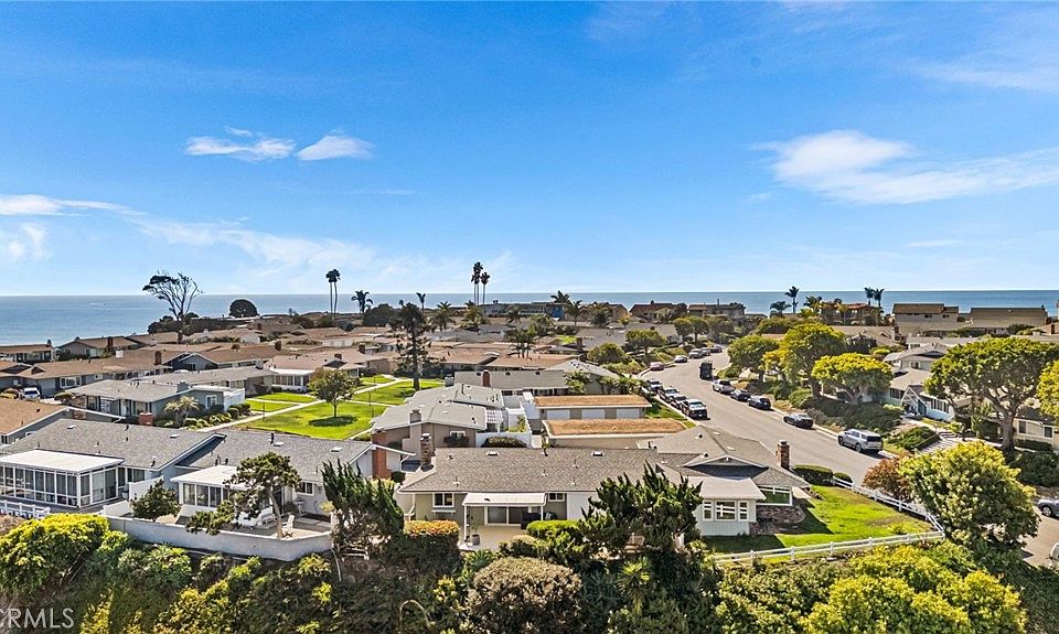 Welcome Home to this beautifully remodeled mid-century modern 2 Bed, 2 Bath home in the highly sought-after coastal 55+ community of Bay Cliff Village. Quietly perched atop the hillside, this home boasts a desirable single-level, open floor plan with large windows that welcome an abundance of natural light. Upon entry, you will be greeted by the sunlit white oak flooring, which seamlessly blends the large, open living room with the dining area. The living room is anchored by a quintessential mid-century modern brick fireplace. In keeping with the 1962 heritage, you will find charm, organic and geometric shapes, and a diverse range of materials used throughout the home. The chef’s galley style kitchen fully embodies actual mid century modern design with custom maple cabinetry, quartz counters, a full tile backsplash, slate hexagon tile floor, Cafe Series appliances all pulled together by the unique charm of a authentic copper oversized sink resting beneath a large window with views for miles. The guest bath feature marble hexagon tile, a new vanity, and a penny tile walk-in shower. The large primary suite boasts plenty of natural sunlight. Your en-suite bathroom has been elegantly remodeled to match the guest bath. The second bedroom has its own private sliding door, joining it to a large sunroom. Use as a serene retreat, home office, or even an art studio. Fully enclosed by floor-to-ceiling windows with a second sliding door that leads to the private patio. The large private patio is surrounded by lush, mature landscaping, boasting views of the Shorecliff golf course, the Saddleback Mountains, and, in the evening, city lights. A perfect environment for unwinding or entertaining. Additionally, there is a large, one-car detached garage and a designated parking spot located steps from the front door. Thoughtful upgrades include a whole-home water filtration system, PEX plumbing, energy-efficient windows, new flooring, and new energy-efficient appliances. Bay Cliff Village is a community featuring picturesque walkways, beautiful gardens, a clubhouse, and several seating areas offering breathtaking panoramic ocean views, all of which contribute to a vibrant community lifestyle. Conveniently located in the center of it all, while still maintaining the integrity of this quiet community. Just a short stroll to the beach, PCH, a few miles to downtown San Clemente, Outlets at San Clemente, and Dana Point Harbor, easy access to the 5 freeway & public transportation.