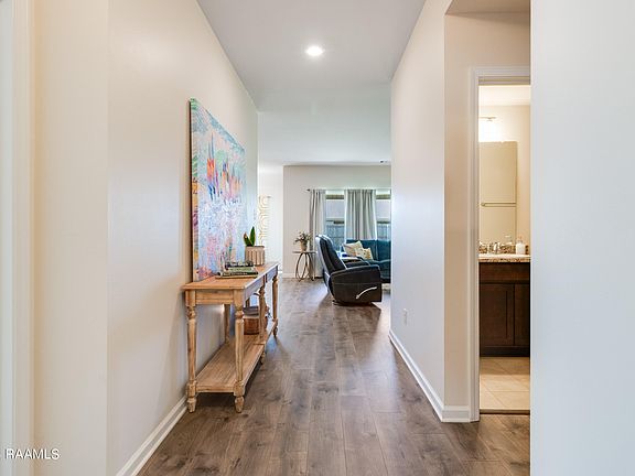 Welcome to this charming, 4 bed, 2 bath home situated on a corner lot in the sought-after Sunset Terrace neighborhood. Step inside to find a spacious and open split floor plan that is perfect for entertaining guests or relaxing with family. The kitchen has beautiful 3c granite countertops and stainless steel appliances. Several rooms have ben freshly painted. Owner is willing to leave the refrigerator, washer and dryer with full price offer. Outside, you will find a large, well-maintained yard with 2 flower/vegetable beds and a double-rear gate access. This subdivision is uniquely able to provide that warm country feel, while also being just minutes from I-49. You will love this property and its location. All potted plants to be reserved by seller.