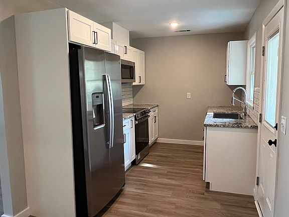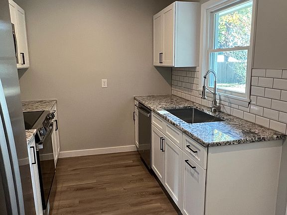 Step inside to find spacious bedrooms, each with their own personal closets, and a custom kitchen featuring brand new stainless steel appliances, a large farmhouse-style sink, and sleek granite countertops perfect for cooking and entertaining.