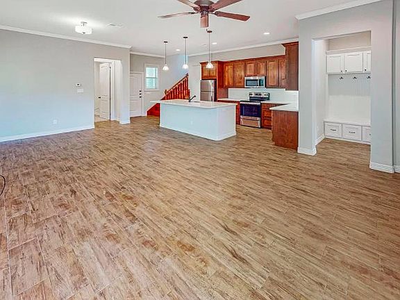 Beautiful four bedroom, four and a half bathroom home with open floor plan. The kitchen is complete with stainless steel appliances and a large island with ample countertop space. A large mudroom is located just off of the main living area. Upstairs is a large family room that shares a hallway with the two upstairs bedrooms. The master bedroom is located on the first floor just off of the main living area. This home features a front porch and a backyard patio. The fenced backyard offers privacy for relaxing outside, or hosting friends and family.