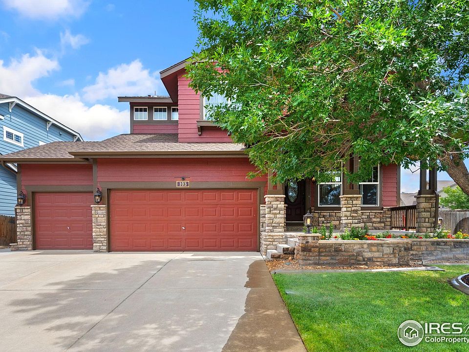 Set on a prime corner lot in Pioneer Ridge, this two-story gem backs to a peaceful greenbelt with just one neighbor. The professionally landscaped yard adds instant curb appeal, while the fresh exterior paint gives this home a crisp, updated feel from the moment you pull up. The main level offers generous living space with two distinct areas to relax, gather, or entertain. One features a gas fireplace that sets the perfect tone for chilly evenings and cozy movie nights. The kitchen is equipped with black appliances and topped with sleek granite countertops and ample prep space. Bright and beautiful bay windows in both the eat-in kitchen nook and separate dining area create sunny spots for morning coffee or formal gatherings. A main level bedroom can double as an office or a hobby room, depending on your needs. Upstairs, a spacious loft area separates three bedrooms and can function as a third living area. The primary suite comes with an ensuite five-piece bath and a large walk-in closet, while the other two bedrooms share a convenient jack-and-jill bathroom. The unfinished basement holds tons of potential for future expansion but already comes with custom shelving for tons of organized storage. Step out back to a fully fenced yard with plenty of room to run and play, complete with a concrete patio that's ready for al fresco dining. The 3-car garage provides plenty of space for vehicles, outdoor gear, or even a workshop area. This central location puts you close to Denver and the greater Metro area with easy highway access, and a variety of amenities within easy reach.