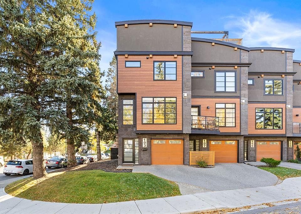 ** Open House Saturday October 25 from noon to 3pm ** Welcome to this stunning corner-unit, 3-level townhouse located in the heart of Parkhill/Stanley Park. Boasting 3 bedrooms, 2.5 bathrooms and a private ROOF TOP PATIO with breathtaking year-round views, this home perfectly blends urban convenience with natural beauty. This location is truly hard to beat - 7 minute walk to the C-train, 8 minute drive downtown, 4 minute drive to Chinook Mall, 7 minute drive to the Calgary Stampede, and best of all, just one block away from beautiful Stanley Park, where you can enjoy easy access to riverside trails, tennis courts, swimming pools, tobogganing, an outdoor skating rink, sports fields, lawn bowling, ping pong tables and lush green space – ideal for outdoor enthusiasts. Inside this executive home, you’ll find an elegant interior finished with hardwood and tile flooring, soaring windows that flood the space with natural light, and a gourmet kitchen featuring quartz countertops, a large island, and custom cabinetry. The primary suite offers a spacious walk-in closet and a spa-inspired en-suite bathroom – your personal retreat at the end of the day. Additional highlights include a single attached garage (220V wired and EV ready), built in Sonos sound system (kitchen/living, master and rooftop), in-floor heating (ground floor and master ensuite), driveway, and low maintenance luxury throughout. This home is more than a place to live – it’s a lifestyle.