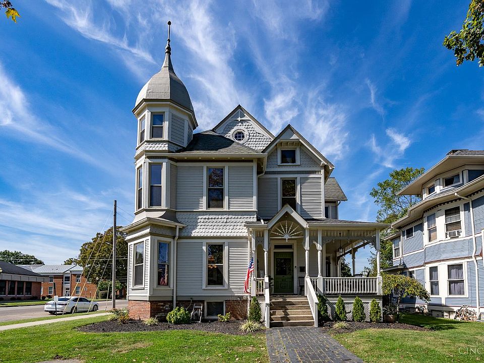 Step into this stunning 1895 Queen Anne Victorian, beautifully restored and full of character, perched on the most prominent corner of Historic Rising Sun. With its turret tower, wraparound porch, and rare original spandrels, this home blends timeless charm with modern comfort. Inside, original oak millwork, an intricately handcrafted banister, and an elegant staircase showcase impeccable craftsmanship. Refinished yellow pine floors add warmth throughout, while original door and window hardware, ornate mantles, and functioning levered transoms preserve the home's historic details. The modern kitchen features custom alder cabinetry and marble countertops, complemented by a luxury bathroom with an oversized garden tub and double vanity. Additional conveniences include a mudroom with a half bath and second-floor laundry. Zoning allows for both residential and business use. The third floor offers incredible potentialperfect for a grand primary suite, studio, or office space.
