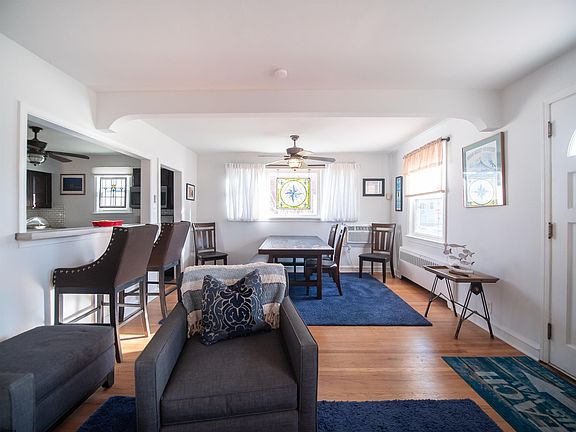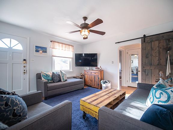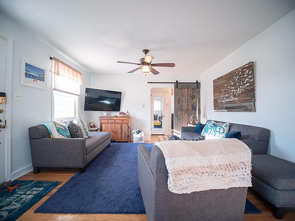 You will love this adorable Cape Cod thoughtfully renovated with tons of creative custom touches! This 3 BR/2 BA home in Ventnor is just 3 blocks to the beach and boards and will delight the moment you walk through the front door. Sitting on an oversized lot on a very desirable street, this property delivers the whole package. Enter the home from the awning covered front porch to the open living room and dining area featuring pristine original hardwood floors. Just beyond is the kitchen which is opened up with a breakfast bar, polished concrete countertops, subway tile backsplash, farmhouse sink and stainless appliances. The adjacent laundry room with utility sink lead to access the backyard completed with a custom built cedar veranda where you will most certainly spend time entertaining or enjoying the large yard. The first floor includes two bedrooms and a stylish shared full bath. The secluded upstairs offers great privacy and another bedroom, full bath and separate living space which could be easily used as a 4th bedroom, office, family room or utilized to transform the upstairs into a deluxe primary suite. Additional features of this home include a detached garage, fully fenced yard, outdoor shower and off street parking for 2 cars. This home is in a quiet neighborhood yet also enjoys close access to the Ventnor’s shops and restaurants nearby. This is a charmer from every direction, enjoy this as your summer beach getaway or for year-round living!