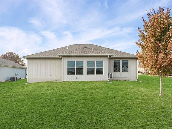 pantry, an island & stainless steel appliances. It is open to the dining area and the living room for an open feel. The kitchen walks out to a nice 4 season sunroom. In the primary suite you will find custom barn door window coverings, double vanity & walk-in closet. Carefree living in this maintenance free 55+ community. Low HOA fee covers lawn maintenance, snow removal, clubhouse & trails. One level ranch! 2 bd, 2 full baths, 2 car garage. Move in ready!