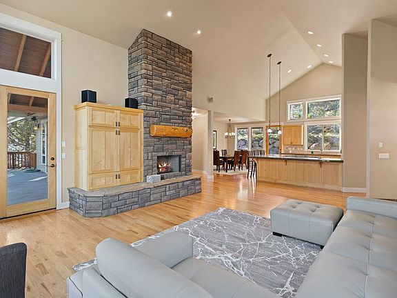 This cozy vacation home features three bedrooms, providing ample space for you and your guests to relax and unwind. The primary bedroom offers access to the balcony, where you can step outside and enjoy the stunning views of Bend and Pilot Butte. It also includes a spacious walk-in closet for ample storage space. With two full bathrooms, including an en-suite with a luxurious double vanity, you'll have all the convenience you need during your stay. The inviting living room, complete with a stone gas fireplace, is perfect for gathering on chilly evenings. Enjoy your favorite shows or movies on the Smart TV, equipped with Wi-Fi for seamless streaming. Prepare delicious meals in the full kitchen, equipped with modern appliances and ample counter space, and enjoy them in the adjacent dining room. Step outside onto the small patio on the ground level to soak up the sunshine and enjoy the fresh mountain air. With comfortable outdoor seating, it's the ideal spot for morning coffee or evening cocktails. Upstairs, you'll find a spacious deck offering breathtaking views of Bend and Pilot Butte, perfect for sipping wine under the stars or soaking up the sun during the day. Nestled in the picturesque city of Bend, this vacation home is ideally situated close to hiking, biking, golfing, and the scenic Deschutes River. Whether you're an outdoor enthusiast or simply seeking relaxation, you'll find plenty of activities to enjoy just moments away from your doorstep.