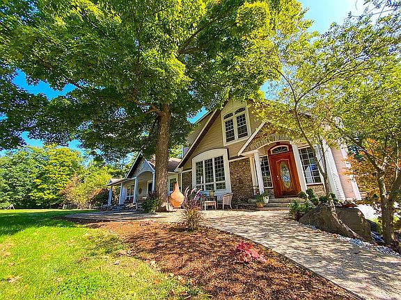 Custom ONE OF A KIND French Country Manor. This stately gentleman’s farm house is situated on 1.33 manicured, usable and landscaped acres. Custom stone and mahogany features throughout this beautiful home including hand made mahogany/burl wood doors, mahogany cased windows and trim, and stone archways. This house is a celebration of fine woods, intricate stone work, marble, slate, and detailed craftsmanship that is rarely seen in these modern times. Amazing landscaping, waterfall and granite trimmed coy pond, 3+ car oversized garage with workshop area, mudroom with key cabinet rack, built in bench, boot keeper, and large cedar closet. Bright light filled ADU/in-law apartment with separate utilities and laundry room. Antique custom 100+ year old hand carved fireplace, brick wood burning fireplace, and two pellet stoves help save on heating costs for this 5,250 sq ft home complete with his and hers offices with matching decorative custom Tiger Wood mahogany insert wood floors, second floor laundry area, grand two story entrance with grand custom built solid mahogany mortise and tenon staircase with marble inlay and marble floor, cathedral ceilings, exposed beam ceilings with skylight, and custom marble flooring with medallion accents. Two master suites with several skylights, full bathrooms in both, one with custom tumbled marble flooring, jacuzzi, two person bathing tub and separate tumbled marble shower, and both with large walk-in closets, wooden exposed beam cathedral ceilings, and individual living/reading areas. 5 bedrooms and 4.5 baths. This home has both a formal living and informal living/family room, high ceilings, cathedral ceilings, vaulted ceilings, arched ceiling, lofted library bookcases, custom deck, wine cellar alcove, custom dog kennel with 3 season living quarters and running water, and double chicken coop or can be used as a cattery. This house is made for entertaining and it features a custom gourmet eat-in kitchen with mahogany trimmed granite countertops, quality high end SS appliances, 3 Liebherr refrigerator/freezers, 2 Bosch dishwashers, Kohler porcelain farmers sink, copper vegetable sink, 4 ovens (2 convection), and it’s 6 burner Decor chef’s stove and range hood with stone accents. Multiple ceiling fans throughout the house for heating exchange and cooling effect, two separate heating systems (propane gas and oil), new roof, new hot water system with preheat and holding tank, new heating systems, vinyl siding/custom stone exterior with mahogany and copper accents. This south facing home has great sun exposure with extra large windows throughout with custom mahogany blinds, it’s bright and light filled even on the darkest of days. Flooring is a mix of hardwood, marble, slate, and stone with carpeting in the two master suites. Home is professionally landscaped and maintained with mature landscaping, multiple waterfall/pond/ fountain features, apple orchard, mature grape vines, custom well house, lit flagpole, custom wood fencing/grape arbor, grand entrance columns with stone inlay, stone walls, and 360 days of stunning pastoral (conservation land) sunsets can be seen from your covered stone/wood farmers porch. If you are tired of cookie cutter houses then this CUSTOM GEM is a must see! Too many custom details to mention. This home is conveniently located in a rural small farming town on the Massachusetts border, near all major city amenities including restaurants, grocery stores, airports, hospitals, and shopping. You can truly have it all, country life with city culture and sunset views to boot! Enjoy Tax free New Hampshire. One hour from Boston, the mountains, and the beaches puts all you could want of New England within easy reach! Three miles from Nashua Airport, twenty miles from Manchester-Boston airport, and three miles from the Everett Turnpike/Rt 3. Hollis features one of the best school systems in New Hampshire. *CONTACT STEPHANIE FOR INQUIRIES & SHOWINGS : 802-985-4248