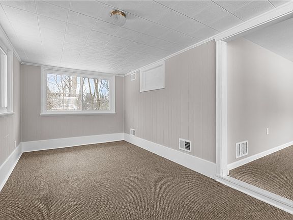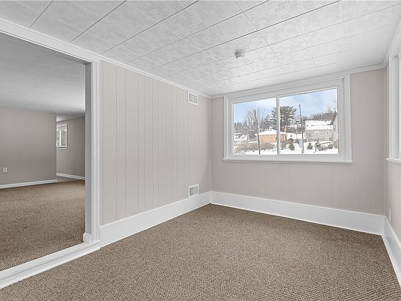 Welcome to this beautifully updated 2-bedroom, 1-bath home with a Pittsburgh potty, nestled on a private, dead-end street in the Chartiers Valley School District. The main level boasts a spacious living room, sun room, two bedrooms, and a BRAND NEW fully renovated kitchen featuring new appliances, including a refrigerator, gas stove, microwave, and dishwasher. Updates throughout including flooring, paint, and full bath. The lower level offers a small game room, laundry area with a Pittsburgh potty, an oversized 1-car garage, and an additional storage room. This home has been updated from the studs out with NEW walls, furnace, AC, hot water tank, roof, and even gutter guards, ensuring peace of mind for years to come. Enjoy the secluded setting while being just minutes from the South Hills, the airport, downtown Pittsburgh, and with easy access to I-79, I-376, and all of Pittsburgh. Move-in ready and meticulously updated—don't miss this incredible opportunity!