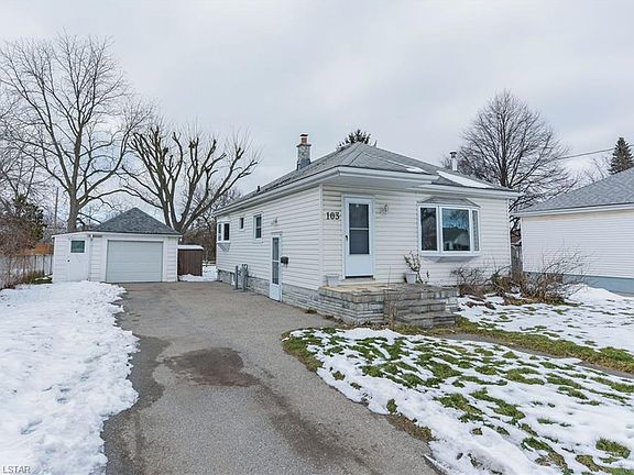 This quaint bungalow with detached garage and lots of parking is located on a private deep lot offering quick highway access and city convenience. Main floor features living room with gas fireplace and hardwood floors, dining room, kitchen, sunroom, 2 bedrooms plus 4 piece bathroom. Lower level is partially finished with 3 piece bathroom, family room, hobby room plus utility/laundry area. Backyard is partially fenced with no house behind! Home has potential and is ready to be finished to your liking!