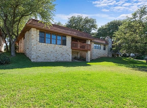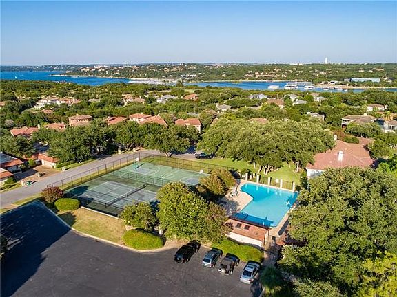 Great Lock & Leave one story backing to greenbelt with Lake views. Gently lived-in, stone home with low exterior maintenance. HOA includes exterior water bill and lawn care. This small pocket of homes within Lakeway has its own private pool, pavilion, & tennis courts. Walking distance to Lakeway's waterfront park, Hike & Bike trails, numerous full service marinas,& golf courses. Updates include Marvin windows & doors, solid interior doors, Carrara marble in bath, "Easy Reach" kitchen cabinets, SS appl.