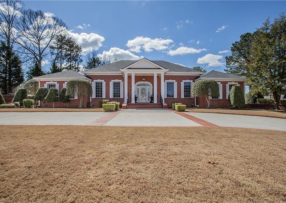 This stately single story home positioned on 2 lots is located on an elevated lot perfectly nestled in a quiet cul-de-sac. This home not only sits on the hole of the the 9th green of Oak Mountain Championship Golf Course but provides a partial view of the Lake across the street. This four-sided brick home offers a single golf cart garage where you can take your golf cart or simply walk to resort like amenities such as golf, tennis, pickle ball, club restaurant, and full-service bar. The custom finishes and rich millwork throughout this open concept, sunny home is warm and elegant. The welcoming foyer invites you to the generously sized family room with stunning custom 7-inch-wide white oak hardwood floors and generous 12-foot ceilings. The kitchen is impeccable with stunning quartzite countertops, Miele and subzero appliances, and an oversized island surrounded by custom Crawford Cabinets. Complimenting the kitchen is a considerably sized office showcasing the same amazing cabinetry, quartzite countertops and upgraded hardware. The glassed in Florida room including a cozy fireplace is the perfect setting for your morning coffee or evening cocktail. All rooms in the back overlook the first-class landscaping and private fenced in yard with an updated travertine stone pool. The main home hosts 3 lovely bedrooms while the elegant home's guest house with one bedroom is warmed by quaint seating areas and an inviting outdoor stone fireplace. The Primary bedroom with a mindfully renovated on suite bath steps out to the beautifully landscaped courtyard and oversized pergola. The two additional spacious bedrooms have on suite baths for your loved ones to rest comfortably. This one of a kind custom build is furnished with endless upgrades to include the three zoned surround sound system throughout the entire home, an extended width driveway, security system, beautiful landscape lighting and intricate underground drainage and irrigation system. Don't let your buyers miss out!