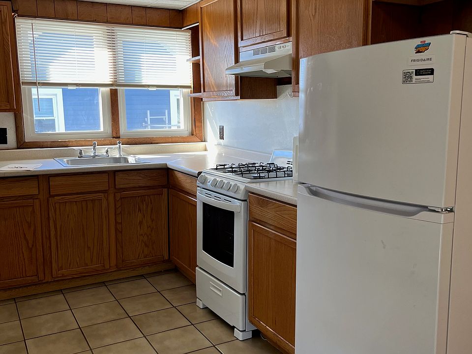 Top floor one bedroom with heat, hot water, and gas for the stove (cooking gas) included. Good sized kitchen. Close to many amenities, coffee shops, grocery stores etc. First and last months rent required, one year lease.