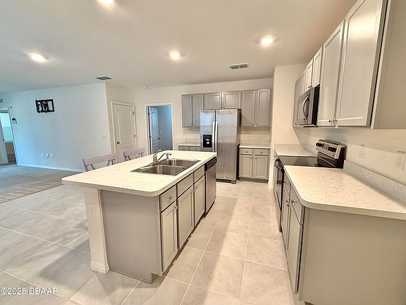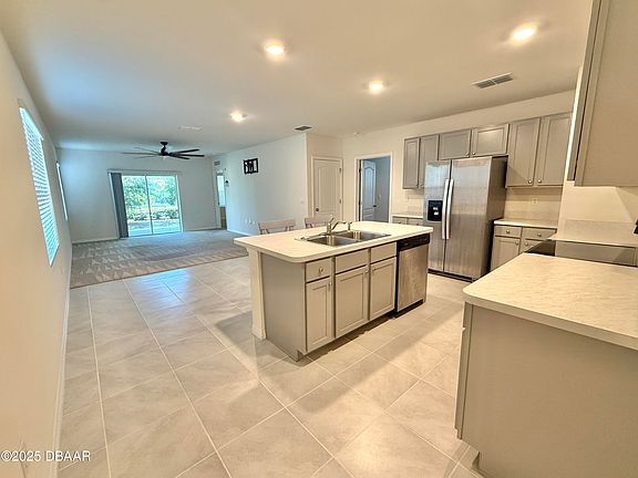 This rental is asking $2,500/month that INCLUDES your cable, utilities (electric, water, trash) & lawn care! Available immediately. 2021 CONCRETE BLOCK HOME THAT HAS NEVER FLOODED! This beautifully maintained 3 bedroom, 2 full bathroom home features an in-house laundry room, with washer and dryer included, and a 2 car garage. As you walk in from your covered front porch, you have a foyer leading to your open floor plan of kitchen and living room space perfect for entertaining or spending time with family. Kitchen offers an island, modern cabinets with stainless steel appliances. Carpet in the living area for comfort. Large newer fans. Master bedroom is in the back of the house for privacy. Master bathroom has double vanities, step in shower & a large walk in closet. This home is energy efficient including smart home features with security. Covered back porch. New landscaping in the front of home with irrigation. Hurricane shutters. Woodbridge Lakes is a newer community in Edgewater, Florida that is close to shopping, restaurants, schools, dining & just minutes to the beach!