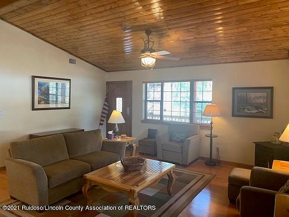 SUPPER CHARMING, well maintained , fully furnished 2 bedroom & 2 bath mountain-log style one level home with easy year around access. Beautiful park-like setting lot on approx 0.29 acre with creek running through it with walkway over. Home features open kitchen, dining and Living Room floor plan w/pellet stove. Deck on 3 sides to enjoy entertaining and relaxing. Metal roof, refrigerated A/C, partially fenced plus fenced backyard with doggie door. Immaculate storage area under home too. Home has pride of ownership with upgrades.