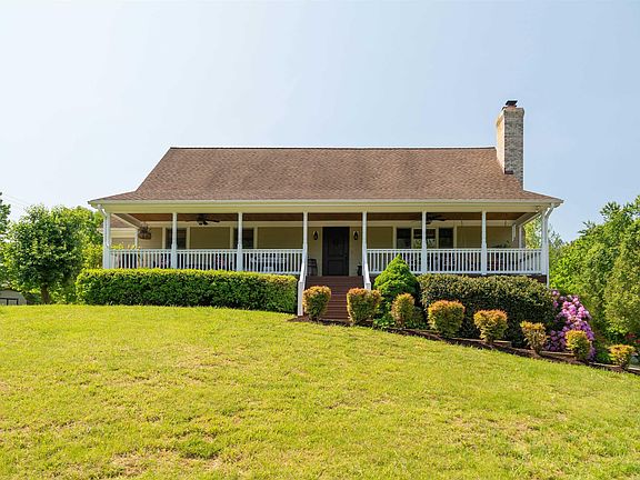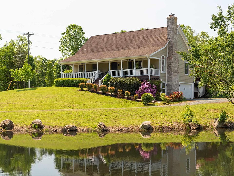 Country Living at its Best! Come enjoy this Special Rustic Property with Cleared Pasture, Stocked Fishing Pond, In-Ground Pool & access to 1000 acres at Pleasant Grove Park with miles and miles of trail system! Incredible privacy on this 8.7 acre lot with 2 run-ins, partially built-in pole barn & chicken coop. Property has previously accommodated horses & cattle. Stunning pine ceiling in the vaulted great room w/hardwood floors (thru-out the main level) & gorgeous floor-to-ceiling wood-burning fireplace with blower. Large kitchen with oversized cabinetry, an abundance of countertop space, breakfast bar, office nook, ceramic tile, granite counters & more. Main level master, main level guest bedroom & main level laundry. Large covered front porch with private views out to the stocked fishing pond. Large back deck, fenced in-ground pool with tons of decking space to spread around, hot tub & outdoor shower. Charming upstairs bedroom with gorgeous pine ceiling & private full bath. Walk-out terrace level features a full kitchen, dining room, 2nd laundry, full bath, living room, den & a 2nd woodburning stove hooked to the heating system. This is an amazing opportunity!