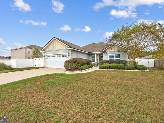 Discover the perfect blend of style and convenience in this appealing 3 bedroom, 2 bathroom home. Its prime location puts you within a mile of shopping and dining, approximately 6 miles from Kings Bay, and offers fast access to I-95 for an effortless commute to Jacksonville. The home's thoughtful design includes a split floor plan for privacy, an indoor laundry room, and attractive vinyl flooring. The living room features a chic electric fireplace, creating a perfect focal point. Outside, the fully fenced backyard provides a great space for pets, and the property's extra-wide double gate is ideal for secure boat or toy storage. Forget the mower-the HOA covers lawn maintenance, and the community's well-fed irrigation system keeps things green. Additional features like a 2-car garage, security system, and water softener make this a complete package!
