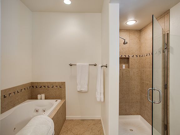 There are 3 bedrooms to sleep 6 adults. In addition there is an Airbed, Futon and large Sofa to accommodate more. Two Master Suites ensure comfort and luxury. One of the master bathroom comes with a Jacuzzi tub. A balcony off each Master Suite compliments the spacious deck by the living area. The guest room & bath are on the second level and the second Master Suite is on the third level along with a large loft with reading and TV viewing area. TV's available in every rooms along with large closets. Full size kitchen with stainless steel appliances. Gas grill on the deck completes the gourmet kitchen. Adjacent to the kitchen is a sitting area and dining area. All the luxury of a detached home with and just a few minutes walk to downtown Chelan's famous restaurants, bars & shopping.