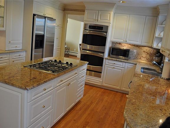 THIS IS ONE YOU TRULY DON'T WANT TO MISS. Colonial style, 2200 sq ft above ground / 884 sq ft for finished basement, 3-4 Bedroom/Office, 2.5 baths,2-Car Garage with remote garage door opener and electric heat, newer cedar impression vinyl siding, newer vinyl replacement windows and doors all interior doors are solid raised panel wood, central A/C - 2 zones,4 zones gas baseboard heat, irrigation system, gleaming hardwoods in kitchen, living room, dining room and entry way with beautiful inlays, open concept kitchen to den with granite countertops, custom cabinets, marble backsplash, and stainless steel appliances. Kitchen equipped with newer electric double oven, dishwasher, and in-sink garbage disposal. Center island gas-cooktop and power retracting hood. Updated floor to ceiling tiled bathrooms, master bedroom suite, which includes a master bath and walk-in closet, heated and recently updated finished basement with bulkhead and extra storage, mudroom with large closet leading to driveway and garage, brand new paved asphalt driveway, backyard is excellent for hosting with an extra-large Trex deck, vinyl fencing, large swing set and manicured landscaping. Brick walkway and 2 brick entrance landings, updated shed, quiet street and a 4-minute drive to Route 37 and highway access to 95 and 295. Located in the desirable Hillside Farms neighborhood in Western Cranston, which attends Orchard Farms Elementary School and Hope Highlands Middle School