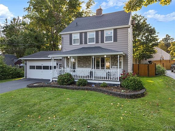 This is the charming colonial of your dreams! A quaint front porch, a drive-thru garage, a fully fenced in, massive yard and only being a hop, skip and a jump from Target, Wegmans, Costco, 695 and so much more... what else could you need?! Even though you may not want to leave the full length porch, you'll enter through the front door into the coziest living room and be greeted by a stunning gas fireplace focal point. The beautiful hardwood floors will carry you throughout this open layout, into the bright dining room and spacious kitchen with granite countertops, tile backsplash, stainless steel appliances and the coolest pull-out pantry. A half bathroom has been thoughtfully added to make entertaining that much easier. The second floor shows off 3 great sized bedrooms and a recently remodeled full bathroom with waterproof flooring. This bathroom isn't like any other, inside the closet you will find stairs to your finished attic space. This could be used as a fourth bedroom, an awesome office or the sweetest rec room. I promise, you won't want to miss this one! Schedule your private showing today or join me at the Open House on Saturday (Oct.19th) from 12pm-2pm.