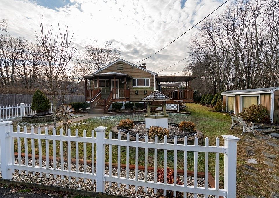 Enjoy this sweet lovingly maintained ranch! Built by the only owners, it is tucked behind a cottage that was reconstructed from one of the extinct Quabbin towns. The yard features a koi pond and 3 sheds. The front shed has power, with a carport or storage area, great for a workshop! Come inside to find a large kitchen with a peninsula and dining room area which opens to a sprawling side deck for warm weather entertaining. Adjacent to the kitchen and dining room is the living room, with a wood burning fireplace. There are 4 bedrooms down the hall and the full bath featuring a jetted soaking tub and separate walk in shower. The full basement has plenty of room and could be finished for a family room or workshop, plus a 1/4 bath with a shower stall too. There was a pellet stove installed that can be used for colder weather. Close to restaurants, UMass, Amherst College and shopping. Make this your own! Showings by appointment. Starting 1/12/23.