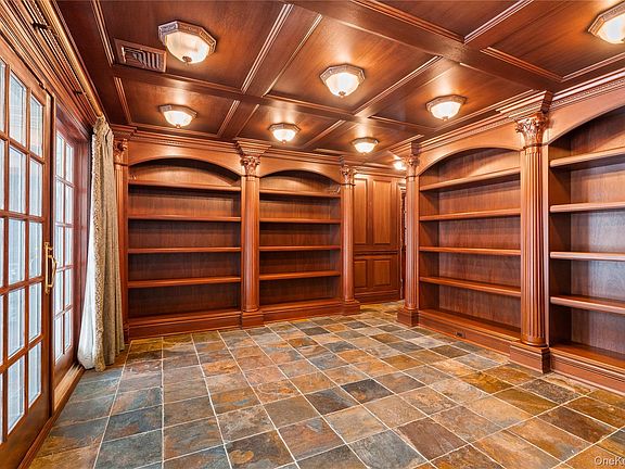 The upstairs landing is anchored by a luxurious primary bedroom suite with dual walk-in closets, two full baths and a spacious dressing lounge. Four additional bedrooms and three more bathrooms provide ample space for everyone to unwind. An additional rear staircase connects to a fifth bedroom and en-suite marble bath. The vast lower level features a billiard room with working fireplace and hosts a generous laundry room. An expansive recreation area offers incredible flex space for limitless possibilities - gym, wine cellar, media room, game/play room, plus plenty of closets for storage. Enjoy the professionally landscaped grounds featuring specimen plantings, multiple bluestone terraces, wraparound mahogany deck, black bottom saltwater pool with stone waterfall and hot tub, bocce court, vegetable garden, and a fire pit— this home offers everything to create a lifestyle that is an entertainer's dream.