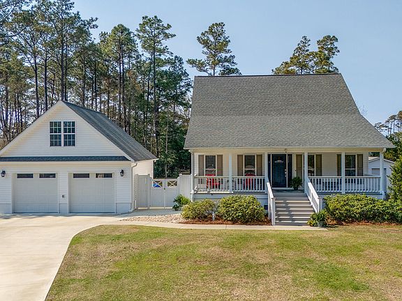 Southern coastal home located in the waterfront community of Deerfield Shores on the Newport River/ICW. Home features an open floorplan with 1st floor primary suite and renovated master bath with tile floors and step-in shower. Updated kitchen with granite counter-tops, tile backsplash and stainless steel appliances. All new flooring with LVP downstairs and carpet upstairs. 2 bedrooms with a full bath and generous walk-in storage on the second story. Enjoy your outdoor space on the gracious front porch or on the deck overlooking the fenced back yard with patio and outdoor fireplace. New roof in 2019. Detached garage (built in 2020) with potential flex space over garage with 267 square feet (unheated). Whole house 20 kw generator installed in 2019. No HOA and county taxes only. Home is convenient to Historic Beaufort, Morehead City and Cherry Point. Morehead Beaufort Yacht Club is located within Deerfield Shores with slips for rent or sale. Use of boat ramp is $100/year (optional). Associate memberships available for swimming pool and clubhouse (optional) **2 hour notice for showings**