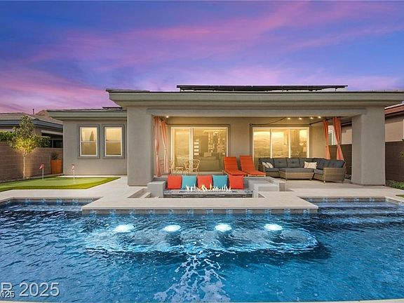 Discover resort-style living in this impeccable 2,601 sq ft single-level retreat in Lake Las Vegas' prestigious gated community. Built in 2020, this entertainer's dream features 3 bedrooms, 4 designer bathrooms, and a versatile multi-generational suite with private entrance—ideal for extended family or a sophisticated home office.