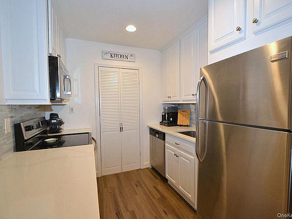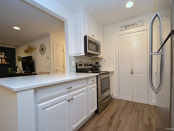 Welcome to Nob Hill in Ronkonkoma, just minutes from the train station, making this unit a commuter’s dream! This fully renovated home features 2 bedrooms, 1 bathroom, and a spacious open floor plan with stunning new Luxury Vinyl Plank flooring. The kitchen boasts stainless steel appliances that are only a year old, while the bathroom is beautifully finished with ceramic tile and a partially glass-enclosed shower. Every closet includes a custom closet system, providing ample storage, and even the heating vents have custom covers. The complex offers a sparkling pool, perfect for relaxing on a summer afternoon, and a clubhouse available for holiday dinners or special events. Don’t miss your chance to make this exceptional unit your new home!