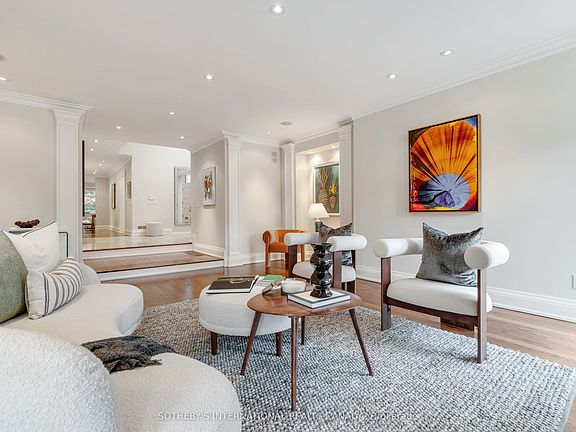 This refined city abode, extensively redesigned by the current owners, offers a total of 3800 sq ft of meticulously renovated and maintained living space across three levels. Situated on a prestigious street in South Hill, this is an extraordinary residence for lovers of art, design, architecture and nature. This mid-century architectural masterpiece is surrounded by parkland and ravines, blending refined design with abundant natural views. Entry into the front foyer immediately confirms the home's classic and timeless style as well as the caliber of the finishes. Soaring two-storey ceilings are illuminated by an upper-level skylight, highlighting the custom bronze iron staircase. The main floor features a superbly scaled sunken living room, with fireplace, generously sized to even accommodate a piano. Everyday living centres around the family room, which boasts massive windows overlooking the spectacular back gardens. Beautifully updated eat-in kitchen with stainless-steel appliances and marble countertops. The second-floor houses three bedrooms and two baths. The primary suite is the epitome of Zen sophistication, featuring built-ins, a walk-in closet, and a renovated five-piece ensuite bathroom. The middle bedroom has been outfitted with a built-in office area (easily removed to accommodate a bed). The lower level provides further expansive living space with a considerably large recreation room and a fireplace. A sauna and shower for wellness, with additional storage area complete this level, with direct access to the double car garage. The exceptional back garden is a private, country-like retreat. The over 196-ft deep lot features professionally landscaped tiers, garden lighting, a spacious dining patio, and an upper-level gazebo and deck that is perfect for lounging and yoga. Enjoy access to some of the city's best private and public schools. Close access to the shops and restaurants of both Yorkville and the Forest Hill Village. A 15-min walk to Dupont subway