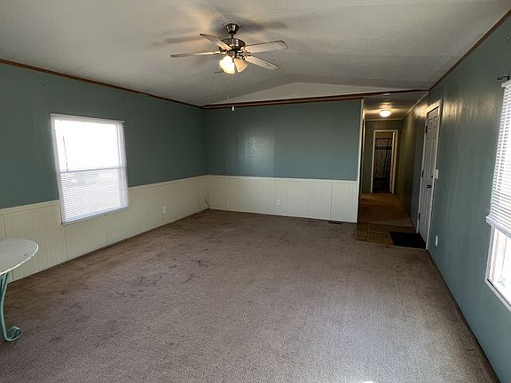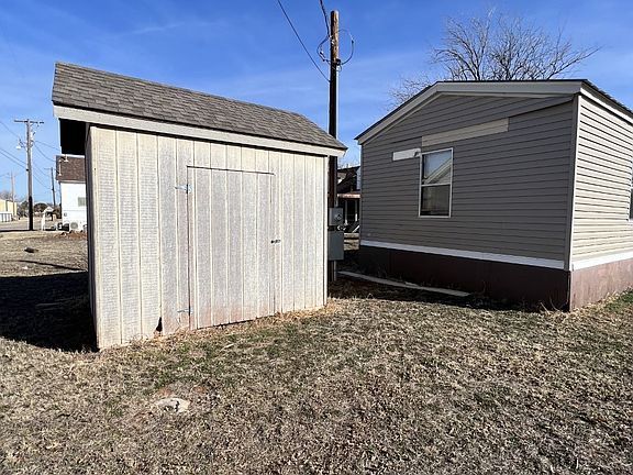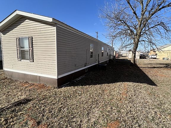 3/2 Manufactured single wide on a lot in heart of the town of Seiling. Very close to the school and easy access to highway. Large open living area with dining room & kitchen attached. Master bedroom & bath on one end of home and two other bedrooms & bathroom on the other. All appliances stay with the home. Refrigerator, stove, washer, dryer, & dishwasher. New metal roof, installed in 2022. Property has been rented and could be used for that very easily. House is move in ready but could use a few upgrades. Storage shed conveys with the property. Property is selling as is, where is.