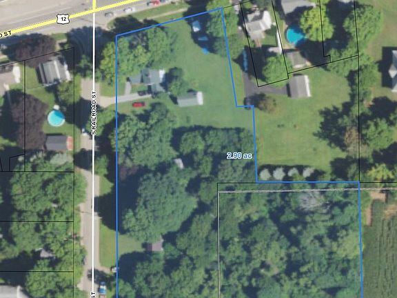 There are 4 outbuildings, some in need of repair and an attached 1 car garage. It has a stately paved drive that circles through the carport. Location is prime for an antique boutique or business of any kind. 189 ft. of frontage on US12 plus 454 ft of frontage on railroad st. allows for access and visibility. Home has a newer roof, natural gas furnace and plenty of space for whatever the buyer chooses to use it as. This is an estate and the owner has never lived in the home. All information is believed to be true at time of listing, but should be verified by the buyer and representing buyers agent.