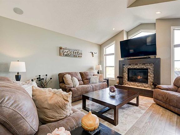 Discover the perfect blend of modern comfort, smart upgrades, and timeless design in this beautifully finished 2015 detached bi-level home by Avonlea Homes. Lovingly maintained by its original owner, this smoke-free home is packed with high-end features, both inside and out.The open-concept main level is bright and welcoming, enhanced by vaulted 12-ft ceilings at the peak, 9-ft ceilings throughout, and multiple skylights that flood the space with natural light. You'll find durable vinyl plank flooring in the main living areas, plush carpeting in all bedrooms, and ceramic tile in each bathroom. The kitchen is a true chef’s dream with quartz countertops, a Samsung gas stove and refrigerator, a Bosch dishwasher (4 years old), built-in microwave shelf, wood-accented range hood, and a garburator for added convenience. All faucets, toilets, and showers are low-flow, ensuring water efficiency throughout. A spacious, main floor laundry room with upper cabinets and a sink adds everyday convenience. The private primary suite offers a spa-like retreat, featuring a jetted tub, rain shower head, and heated tile floors in the ensuite. Downstairs, the fully finished basement delivers on both style and versatility with a custom wet bar featuring granite countertops, bar fridge and a soundproof bedroom—ideal for guests, a home office, or media room. This home comes loaded with functional upgrades: a Navien tankless hot water system (4 years old), original furnace (regularly serviced), central A/C, Nest programmable smart thermostat, keyless entry to both the house and garage, sump pump, and a gas fireplace with a fan that helps reduce utility costs in the winter. The heated, insulated, drywalled, and epoxied garage includes a man door to the backyard for added access and flexibility. Curb appeal is elevated by vinyl siding with rock accents and Gemstone smart exterior lighting. Outdoors, enjoy the pressure-treated wood deck with natural gas BBQ hookup, a 15x32 concrete pad (just 2 years old)—perfect for entertaining—and a fully landscaped, low-maintenance yard supported by a Hunter underground irrigation system (front and back). The property also features dual backyard access from both the garage side and street side. With its stylish finishes, smart upgrades, and superior maintenance history, this move-in-ready home offers the perfect blend of comfort, efficiency, and lasting value. Book your private tour today—this home won’t last long!