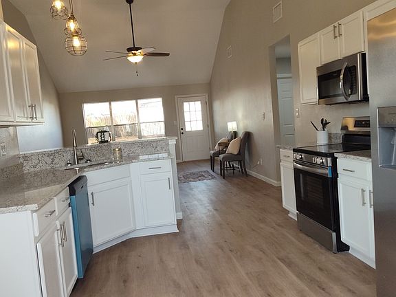 Welcome to your charming sanctuary located in the heart of Jourdanton, TX! This delightful brick home seamlessly blends comfort with style, offering both a peaceful retreat and convenient access to local amenities. Boasting high ceilings that create an open and airy ambiance, this residence provides an abundance of living space designed for relaxation and entertaining. Step inside to discover thoughtfully upgraded interiors, where modern touches meet timeless design. The expansive living areas are perfect for family gatherings or quiet evenings at home. The kitchen stands as a focal point, equipped with contemporary finishes that will inspire your culinary creativity. Brand new stainless steel appliances included to make this home move-in ready! Nestled in a small-town setting brimming with charm and tranquility, you'll enjoy leisurely strolls to the nearby coffee shop and bookstore-perfect for indulging in community vibes or finding your next favorite read. Moreover, essential conveniences such as the hospital and various stores are just a short drive away. Discover a lifestyle of serene comfort in this inviting abode-a true gem that combines small-town charm with accessibility. Your ideal home awaits in Jourdanton; come experience it today!