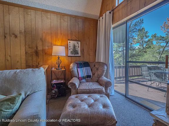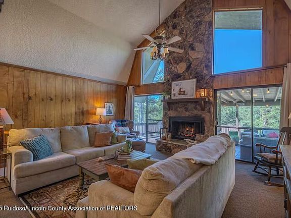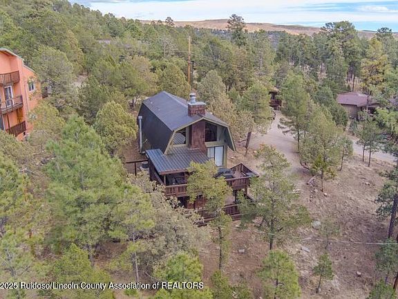 This mountain home is so welcoming and comfortable that it has been enjoyed as both a private residence, as well as a successful nightly rental. The main level open floor-plan, inviting for family and friend gatherings, flows through onto the expansive deck area. The upper loft master suite boasts a workspace with a view, while two lower-level bedrooms offer a more private space that is easily accessible from the covered spa patio. Nestled into a lightly wooded lot and situated near Ruidoso dining and activities, this home appeals to full-time residency or as a short-term rental investment.