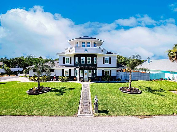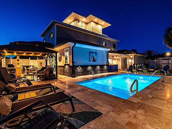 This remarkable 3-story island pool home – affectionately nicknamed “The Lighthouse” - boasts unparalleled ocean vistas. Nestled high and dry on a prime corner lot, this dream coastal retreat features an elevator for effortless access to all 3 floors. The main level welcomes you with a gourmet kitchen, complete with a 6-burner gas stove, stainless steel appliances, custom cabinets, and an elegant backsplash. A stylish under-stairs pantry adds a touch of class while maximizing storage. The kitchen seamlessly flows into the living area, ideal for hosting gatherings. Also on this level is a full bathroom, guest bedroom, and laundry room. Step outside into your fully fenced backyard and onto the covered and pavered back patio just waiting for a weekend BBQ. You and your guests will appreciate floating the day away in your lovely in-ground pool with elegant tile pool decking. Clean off in the private outdoor shower before heading back inside. Make your way to the second floor where the luxurious primary suite awaits with dual closets, an adjoining office, and a custom ensuite bathroom. A guest bedroom with ensuite bath completes this floor. Ascend the spiral staircase to the third-floor observation balcony, where you can savor stunning ocean views at any time while sipping on your favorite beverage. This floor also includes an indoor sitting space with a beverage fridge and a half bathroom, providing the perfect spot to relax and unwind. Plantation shutters add an additional touch of elegance throughout this home. The 2-car garage provides plenty of space for all your beach gear and toys. Extra upgrades that you'll rarely see are the soffits that are 1/2"x6" bead board PVC and outside trim is 5/4" Azek trim. Experience island living at its finest in this meticulously designed oasis.